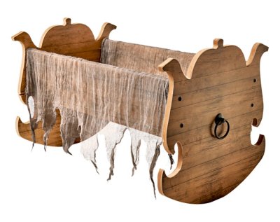 Handle with scare! You'll be mummy of the year with this officially licensedZombie Baby Cradle. This rocking cradle features an eerie, weathered wood design, dangling distressed cloth, and a mysterious voice-activated audio box. Lay your bundle of joy down for a nap, just don't forget to sleep with one eye open! Officially licensed Care: Spot clean Material: MDF, fabric, paper, metal Voice-activated audio box included. Capacity: 10 pounds Battery type: 3 AAA Batteries (not included) Dimensions: 21"W x 13.75"H x 12.75"D Assembly time: 11 Minutes Imported Note: This is NOT a real cradle. For use with Zombie Babies ONLY.