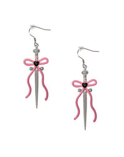 Buy Pink Bow Dagger Dangle Earrings for $12.99 at @ Spencersonline.com