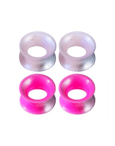 Includes: 2 pairs of tunnels Piercing Type: Ear Material: Silicone Available in multiple sizes Jewelry Care: Clean with antibacterial soap and warm water Piercing Care: Clean withH2Ocean Aftercare Spray(sold separately) or saline solution Imported Note: Do not use any harsh, alcohol-based chemicals as this may cause tarnishing Wear in healed piercings only. If irritation occurs, remove immediately. This is a decorative item and should not be worn to sleep.