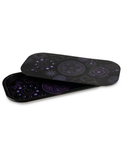 Add some witchy vibes to any table space with this Pentagram Tray with Lid. Use this wicked tray to store all of your crystals, voodoo dolls and more! Dimensions: 8" H x 4" W x 0.5" D Material: Tin Care: Spot clean Imported.