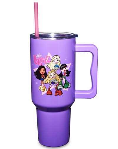 Look like a total 2000s babe with this officially licensed Purple Bratz Tumbler with Straw! With Cloe, Sasha, Jade, and Yasmin featured on the tumbler, people will know you're a true fan of the Bratz dolls. Officially licensed Includes Cup Lid Straw Dimensions: 10.63" H x 2.91" W Capacity: oz. Material: Stainless steel Care: Hand wash Imported.
