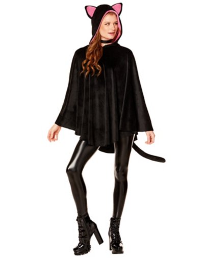 Me-ow! Get ready to be one of the most iconic symbols of Halloween with this Cat Poncho! This poncho is complete with a hood that has cat ears making it the perfect no effort costume. Pair this cat poncho with your favorite pair black leggings and some whiskers to be the worlds cutest cat. Crewneck Pullover style One size fits most Material: Polyester, spandex Care: Spot clean Imported Note: Shoes, pants and other accessories sold separately.