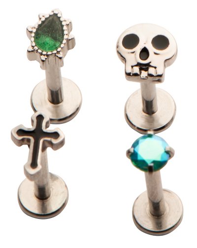 Buy Multi-Pack Green and Blue CZ Skull Labret Lip Rings 4 Pack - Gauge for $16.99 at @ Spencersonline.com