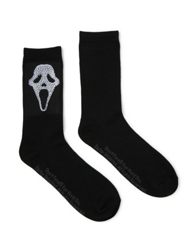 Make a killer fashion statement with these Ghost Face rhinestone crew socks! These fun socks are the perfect addition to any horror movie fan's wardrobe. Officially licensed Material: Polyester, spandex Care: Machine wash Imported Ghost Face is a registered trademark of Fun World Div., Easter Unlimited Inc. Ghost Face protected under worldwide copyright registration and is the exclusive property of Fun World Div., Easter Unlimited Inc. All Rights Reserved.