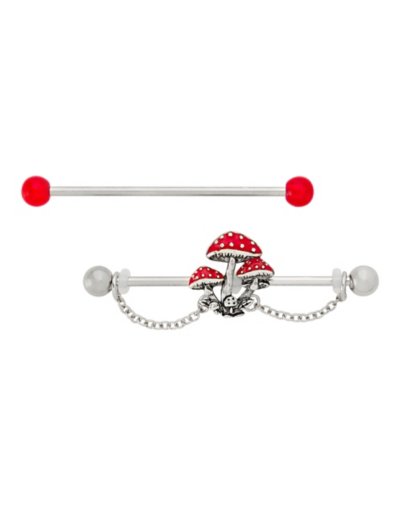 Multi-Pack Red Mushroom Dangle Industrial Barbells 2 Pack - Gauge