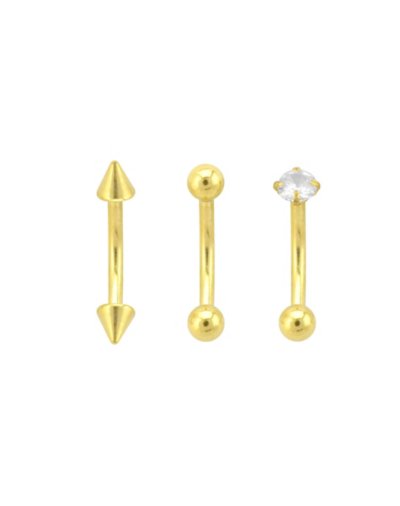 Multi-Pack CZ Goldtone Spike and Prong Curved Barbells 3 Pack - Gau