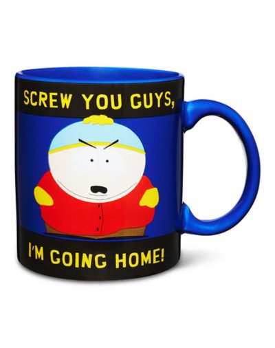 Screw you guys, I'm going home! Represent your favorite South Park character whenever you brew coffee or tea. Dimensions: 3.78" H x 3.78" W x 4.33" D Capacity: oz. Material: Ceramic Care: Hand wash only Imported.