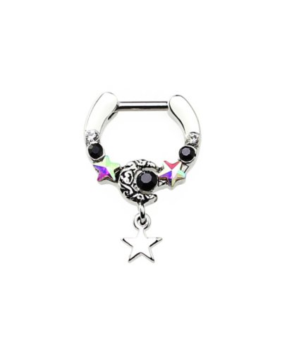 CZ Moon Star Dangle Septum Ring - Gauge