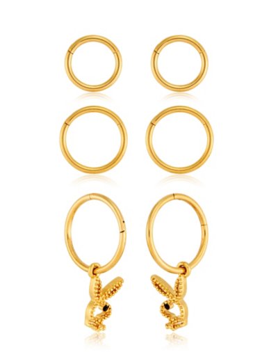 Buy Multi-Pack Black CZ Goldtone Playboy Pendant Hoop Earrings 3 Pair for $29.99 at @ Spencersonline.com