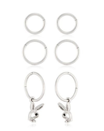 Buy Multi-Pack Black CZ Playboy Pendant Hoop Earrings 3 Pair - Gauge for $29.99 at @ Spencersonline.com