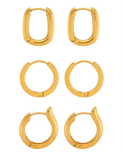 Includes: 3 Pairs of hoop earrings Material: 316L Surgical steel Plating Material: Gold Jewelry Care: Wipe clean orSpencer's Jewelry Wipes Imported Note: Do not use any harsh, alcohol-based chemicals as this may cause tarnishing Surgical steel may contain traces of nickel This is a decorative item and should not be worn to sleep.