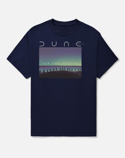 Let everyone know what movies your binging or books your burning through with this officially licensed See the Future tee. This t shirt features the Fremen trekking the sands of Arrakis. Crewneck Short sleeves Material: Cotton Care: Machine wash; tumble dry low Imported This tee is Unisex Sizing only For a fitted look, order one size smaller than your normal size Note: This item is print to order and may have a 1 to 2 day extra processing time.