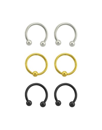 Includes: 2 Pairs of horseshoe rings 1 Pair of captive bead rings Piercing Type: Multiple Material: 316L Surgical steel Gauge: Gauge/1.2mm Length: 10mm Ball Size: 3mm Externally threaded closure Jewelry care: Clean with antibacterial soap and warm water Piercing Care: Clean withH2Ocean Aftercare Spray(sold separately) or saline solution Imported Note: Do not use any harsh, alcohol-based chemicals as this may cause tarnishing Do not over-thread or apply excess pressure when adding/removing beads as breakage could occur Surgical stee.