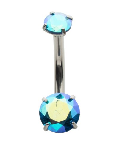 Includes: 1 Belly ring Piercing type: Belly Material: 316L surgical steel Plating: Silver plated Stone type: Cubic zirconia Stone color: Blue Gauge: 14 gauge / 1.6mm Length: 7/16" / 11.2mm External thread closure Jewelry care: Clean with antibacterial soap and warm water Piercing care: Clean with H2Ocean Aftercare Spray (sold separately) or saline solution Imported Note: Do not use any harsh, alcohol-based chemicals as this may cause tarnishing Note: Do not over-thread or apply excess pressure when adding/removing beads as breakage could occur Wear in healed piercings only. If irritation occ.