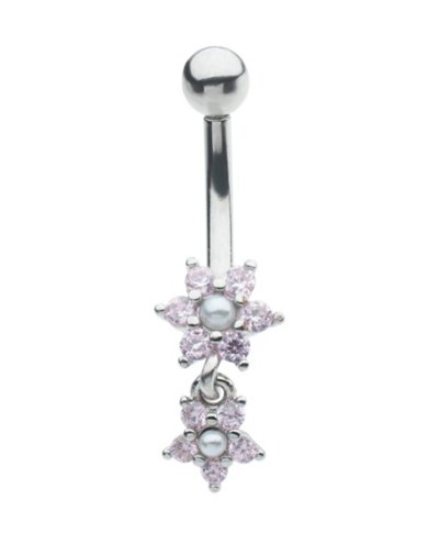 Buy CZ Pink Flower Double Gem Belly Ring - 14 Gauge for $16.99 at @ Spencersonline.com