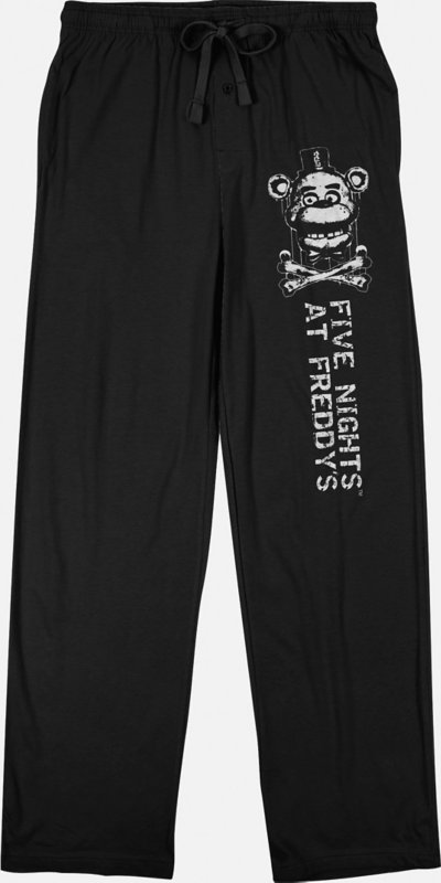 Rest and relax in comfort and style all day long with these Freddy Crossbones Lounge Pants. These stylish pants will have any fan of Five Night's at Freddy's feeling comfortable and showing their love anywhere they go. Officially licensed Elastic waistband Front pockets Drawstring closure Material: Polyester Care: Machine wash Imported.