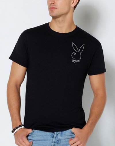 Shout out your favorite lifestyle brand with this Playboy Bunny t shirt! Featuring the iconic logo on the front and Playboy four times on the back, you'll be letting everyone know you're all about having fun whenever you wear this tee. Officially licensed Crewneck Short sleeves Material: Cotton Care: Machine wash; tumble dry low Imported This shirt is Unisex Sizing only For a fitted look, order one size smaller than your normal size.
