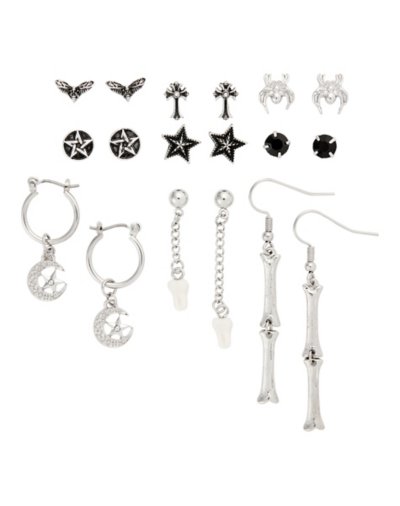 Exclusively at Spencer's Includes: 6 Pairs of stud earrings 1 Pair of huggie hoop earrings 2 Pairs of dangle earrings Material: Zinc, steel Jewelry Care: Wipe clean or useSpencer's Jewelry Wipes Piercing care: Clean withH2Ocean Aftercare Spray(sold separately) or saline solution Imported Note: Do not use any harsh, alcohol-based chemicals as this may cause tarnishing This is a decorative item and should not be worn to sleep.
