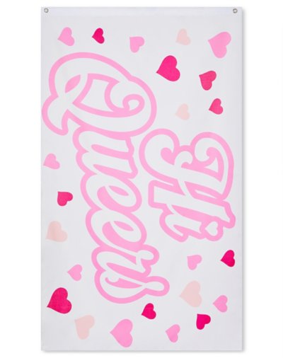Greet the queer community in style with this Hi Queers flag! This fun flag is perfect for hanging in your window or on your wall, or wearing at a festival or Pride parade! Exclusively at Spencer's Dimensions: 36" H x 60" W Material: Polyester Care: Spot clean Imported.