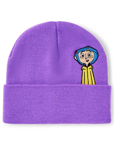 If you're a lover of Coraline then this is the perfect accessory for you. This purple beanie includes a portrait of Coraline, but if you fold down the cuff you might be surprised at who you'll find! Officially licensed Material: Acrylic Care: Machine wash Imported.