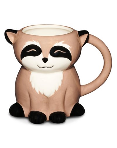 Share your mornings with a friendly companion when you get this adorable raccoon-shaped coffee mug. Add it to your drinkware collection and kick off your day with a smile! Dimensions: 5.9" H x 4.3" W x 4.3" D Material: Ceramic Care: Hand wash Imported.
