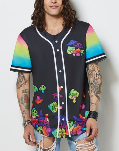 Don't trip because you're looking for a cute outfit, this Eat Me Jersey is just the thing you've been looking for. This colorful Jersey is covered in mushrooms and makes it the perfect accessory for any outing.Wear this piece to your next rave, festival, or spring fling! Exclusively at Spencer's Short sleeves Tagged Material: Polyester Button closure Care: Spot clean Imported.
