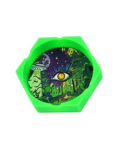 Smoke in otherworldly style with this alien eye spaceship hexagon ashtray! This fun silicone ashtray is the perfect addition to any smoker's home. Dimensions: 3.25" H x 3.25" W x 1" D Material: Silicone Care: Dishwasher safe Imported.