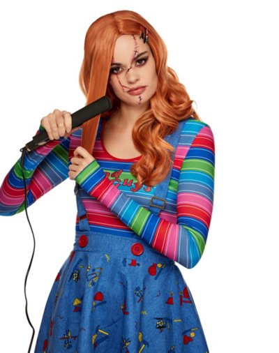 Need something to tie together your Chucky-inspired costume? Look no further than this officially licensed Chucky Wig! Utilize the included knife hair accessories and make it clear youre the ultimate horror fan. Officially licensed Includes: Wig Hair accessories Heat resistant up to 325 degrees Fahrenheit Material: Polyester Care:Hand wash with cold water and mild shampoo; air dry Imported.