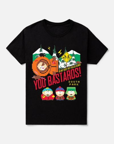 "Oh my god, they killed Kenny! You bastards!" Consider yourself the ultimate fan of South Park? Gear up in this officially licensed You Bastards T Shirt and everyone will know youre a hardcore fan! Featuring Cartman, Kenny, Kyle, and Stan on the front, you'll love rocking this comfortable tee from one of your favorite South Park episodes. Officially licensed Crewneck Short sleeves Material: Cotton Care: Machine wash; tumble dry low Imported This shirt is Unisex Sizing only For a fitted look, order one size smaller than your normal size Note: This item is print to order and may have a 1-2 day extra processing time.
