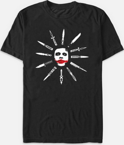 So many knives, so little time. Rep your favorite villain and look good doing it in this officially licensed The Joker T Shirt. The Clown Prince of Crime is here to take over Gotham for good! Officially licensed Crewneck Short sleeves Material: Cotton Care: Machine wash; tumble dry low Imported This shirt is Unisex Sizing only For a fitted look, order one size smaller than your normal size Note: This item is print to order and may have a 1 to 2 day extra processing time.