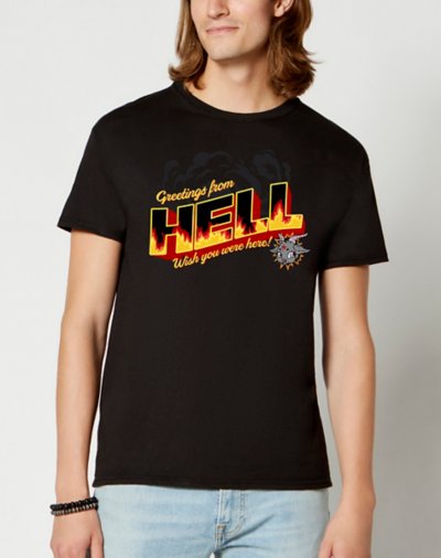 Buy Greetings From Hell T Shirt - Opippi for $21.59 at @ Spencersonline.com