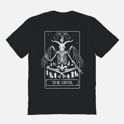 Show off your love for tarot when you decide to wear this The Devil Card T Shirt. This cool devil tee is a great way to add some personality to any casual look and is sure to get you some attention in any crowd. Crewneck Short sleeves Material: Cotton Care: Machine wash; tumble dry low Imported This shirt is Unisex Sizing only For a fitted look, order one size smaller than your normal size Note: This item is print to order and may have a 1-2 day extra processing time.