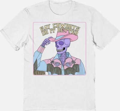 Add some fresh style to your everyday wardrobe when you get this Gay Cowboys T Shirt by Abprallen. This incredible tee is sure to have you looking and feeling your absolute best! Officially licensed Crewneck Short sleeves Material: Cotton Care: Machine wash; tumble dry low Imported This shirt is Unisex Sizing only For a fitted look, order one size smaller than your normal size Note: This item is print to order and may have a 1 to 2 day extra processing time.