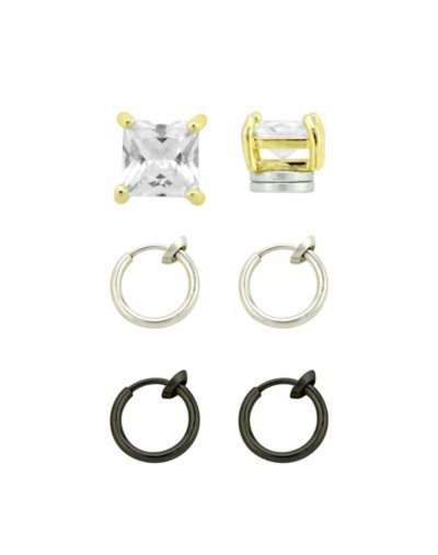 Buy Multi-Pack Square CZ Magnetic Fake Studs and Fake Hoop Earrings - 3 Pa for $16.99 at @ Spencersonline.com
