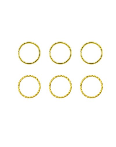 Multi-Pack Goldtone Seamless Hoop Nose Rings 6 Pack - Gauge