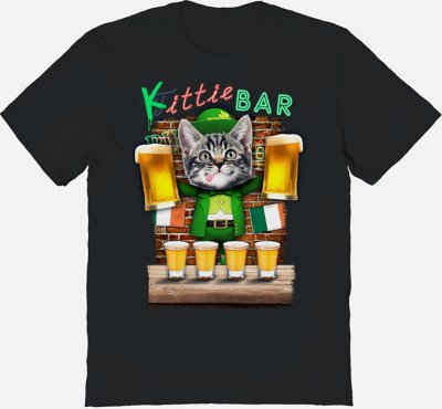 Add a fresh new St Paddy's Day inspired look to your casual wardrobe when you rock this stylish Kittie Bar T Shirt. Wear this t shirt for your next St. Patrick's Day celebration and you'll be looking great and ready to party! Crewneck Short sleeves Material: Cotton Care: Machine wash; tumble dry low Imported This shirt is Unisex Sizing only For a fitted look, order one size smaller than your normal size Note: This item is print to order and may have a 1-2 day extra processing time.