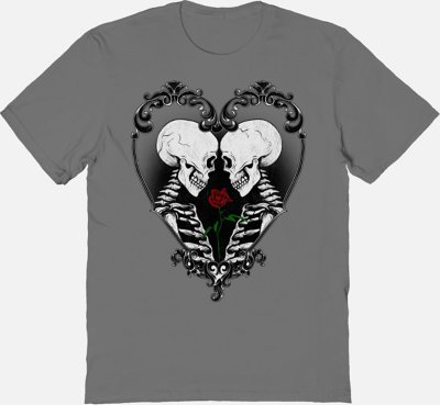 Feel the love all the way in your bones this Valentine's Day when you rock this Skeletons Rose Heart T Shirt. This stylish tee is the perfect choice for any Valentine's Day event and is sure to have you looking good and ready to spread the love everywhere you go. Crewneck Short sleeves Material: Cotton Care: Machine wash; tumble dry low Imported This shirt is Unisex Sizing only For a fitted look, order one size smaller than your normal size Note: This item is print to order and may have a 1-2 day extra processing time.