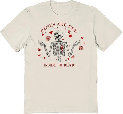 Feel the love all the way in your bones this Valentine's Day when you wear this Inside I'm Dead T Shirt. This stylish tee is the perfect choice for any Valentine's Day gathering and sure to have you looking good and give your friends a laugh once they read the short poem on the front. Crewneck Short sleeves Material: Cotton Care: Machine wash; tumble dry low Imported This shirt is Unisex Sizing only For a fitted look, order one size smaller than your normal size Note: This item is print to order and may have a 1-2 day extra processing time.