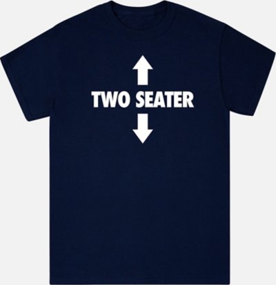 Make a hilarious entry into any room when you decide to wear this Two Seater T Shirt. This Danny Duncan tee is sure to become a favorite in your collection once you get it for yourself and will have you feeling comfortable all day long. Officially licensed Exclusively at Spencer's Crewneck Short sleeves Tagless Material: Cotton Care: Machine wash Imported This shirt is Unisex Sizing only For a fitted look, order one size smaller than your normal size.
