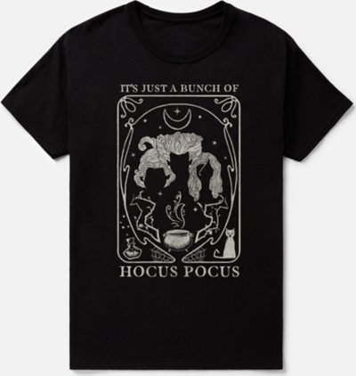 Put a fashionable spin on your love of the Sanderson sisters with this stylish Hocus Pocus t shirt! This black and white graphic tee is an exciting way to show off your Hocus Pocus fandom. Officially licensed Crewneck Short sleeves Material: Cotton Care: Machine wash; tumble dry low Imported This shirt is Unisex Sizing only For a fitted look, order one size smaller than your normal size.