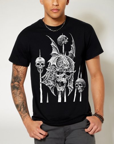 If your love all things dark and creepy, this officially licensedImpaled Skulls T Shirt is a must-have for your wardrobe. Officially licensed Crewneck Short sleeves Material: Cotton Care: Machine wash; tumble dry low Imported This shirt is Unisex Sizing only For a fitted look, order one size smaller than your normal size Note: This item is print to order and may have a 1 to 2 day extra processing time.