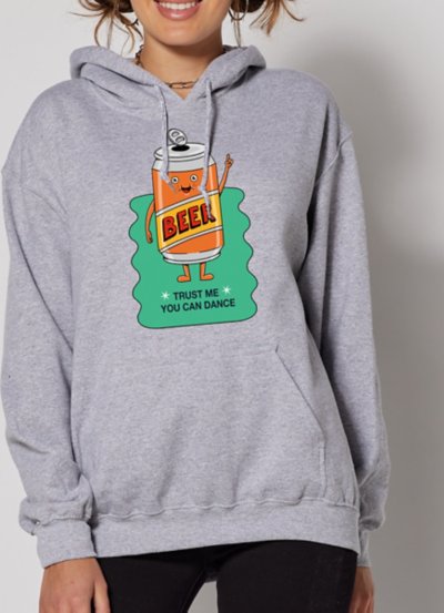 "Trust me, you can dance!" - Beer. This soft gray hoodie by Coffee Man features a friendly beer offering words of encouragement. Pairs well with dancing shoes. Officially licensed Crewneck Long sleeves Material: Cotton Care: Machine wash; tumble dry low Imported This shirt is Unisex Sizing only For a fitted look, order one size smaller than your normal size Note: This item is print to order and may have a 1 to 2 day extra processing time.