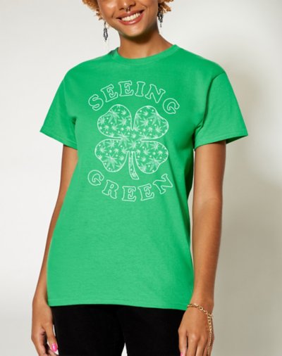Everyone will know you're seeing green this St. Patrick's day when you rock this Seeing Green T Shirt.This tee is a perfect way to add some St. Patrick Day vibes to any casual look and will have you ready to celebrate all day long! Crewneck Short sleeves Material: Cotton Care: Machine wash; tumble dry low Imported This shirt is Unisex Sizing only For a fitted look, order one size smaller than your normal size Note: This item is print to order and may have a 1-2 day extra processing time.