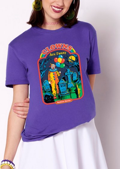 Get ready to clown around when you rock this officially licensed Clowns Are Funny T Shirt by Steven Rhodes. They might look creepy, but these clowns are here for the laughs! Officially licensed Crewneck Short sleeves Material: Cotton Care: Machine wash; tumble dry low Imported This shirt is Unisex Sizing only For a fitted look, order one size smaller than your normal size Note: This item is print to order and may have a 1 to 2 day extra processing time.