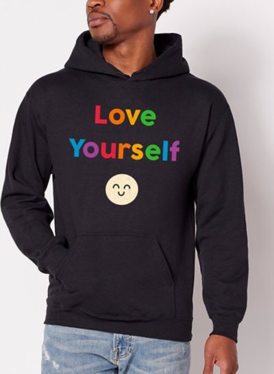 Celebrate pride in style by rocking this Love Yourself Hoodie as part of your look wherever you go! This stylish hoodie is the perfect way to fit right in at any pride event and show you're all about self-love and inclusivity. Exclusively at Spencer's Crewneck Long sleeves Material: Cotton Care: Machine wash; tumble dry low Imported This shirt is Unisex Sizing only For a fitted look, order one size smaller than your normal size Note: This item is print to order and may have a 1-2 day extra processing time.