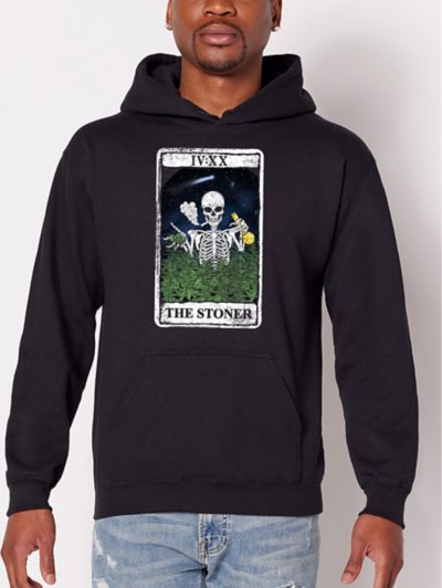 Let everyone know what your favorite hobby is with this Stoner 420 hoodie! This bold and cozy hoodie with skeleton artwork is sure to get you noticed whenever you wear it. Exclusively at Spencer's Crewneck Long sleeves Material: Cotton Care: Machine wash; tumble dry low Imported This shirt is Unisex Sizing only For a fitted look, order one size smaller than your normal size Note: This item is print to order and may have a 1-2 day extra processing time.