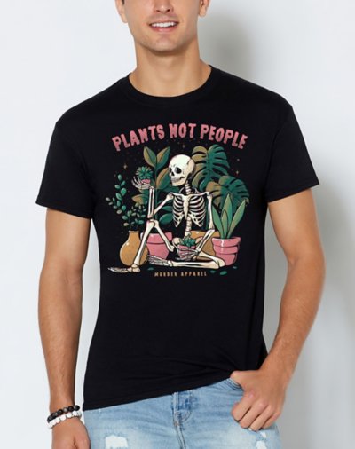 Let everyone know you'd rather be chilling with your plants with this funny graphic tee. With its skeleton and plant artwork, this t shirt is sure to get you plenty of double takes when you make it part of your casual wardrobe. Officially licensed Crewneck Short sleeves Material: Cotton Care: Machine wash; tumble dry low Imported This shirt is Unisex Sizing only For a fitted look, order one size smaller than your normal size Note: This item is print to order and may have a 1-2 day extra processing time.