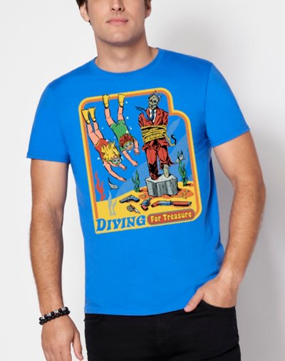 Start your underwater adventure with this hilariously grim tee by Steven Rhodes! This tee, which depicts two children diving for treasure and making an unexpected discovery, is sure to make a splash whenever you slip into it. Officially licensed Crewneck Short sleeves Material: Cotton Care: Machine wash; tumble dry low Imported This shirt is Unisex Sizing only For a fitted look, order one size smaller than your normal size Note: This item is print to order and may have a 1-2 day extra processing time.