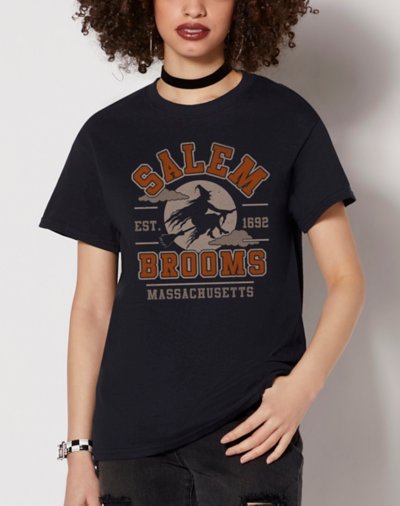 Add some witchy style to your casual look when you rock this Salem Brooms T Shirt. With this t shirt added to your collection you'll always be showing your obsession with the Salem Witch Trials and looking in the spooky spirit. Crewneck Short sleeves Material: Cotton Care: Machine wash; tumble dry low Imported This shirt is Unisex Sizing only For a fitted look, order one size smaller than your normal size Note: This item is print to order and may have a 1-2 day extra processing time.