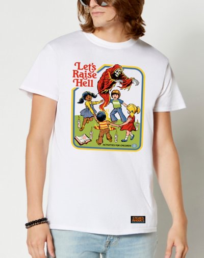 Get ready to raise some hell in style with this officially licensed Steven Rhodes t shirt. This Let's Raise Hell T Shirt is the perfect addition to your graphic tee collection whenever you're feeling a little mischievious and want to cause a bit of chaos. Officially licensed Crewneck Short sleeves Material: Cotton Care: Machine wash; tumble dry low Imported This shirt is Unisex Sizing only For a fitted look, order one size smaller than your normal size Note: This item is print to order and may have a 1-2 day extra processing time.